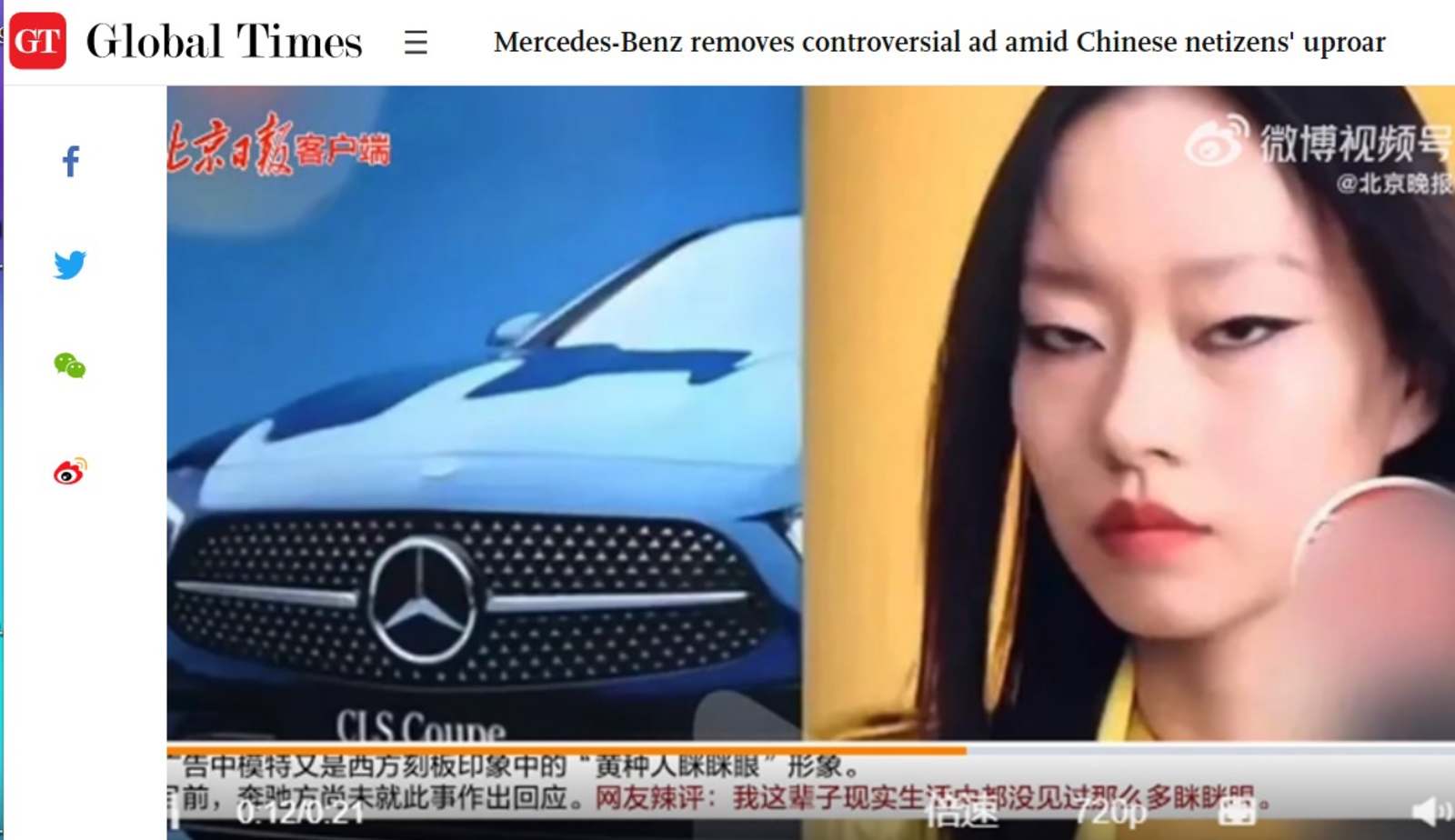 Mercedes-Benz removed a video advertisement from a Chinese social media website, state media said, after the clip got swept up in a charged national debate over depictions of Asian-looking features by foreign companies.